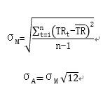 SigmaA表示歷史年化標(biāo)準(zhǔn)差(歷史年化波動率);SigmaM 表示月度總回報(bào)率的標(biāo)準(zhǔn)差;n 表示計(jì)算期間所含月數(shù);TRt表示第 t個月的基金總回報(bào)率;TR 拔表示n 個月的基金總回報(bào)率平均值。
